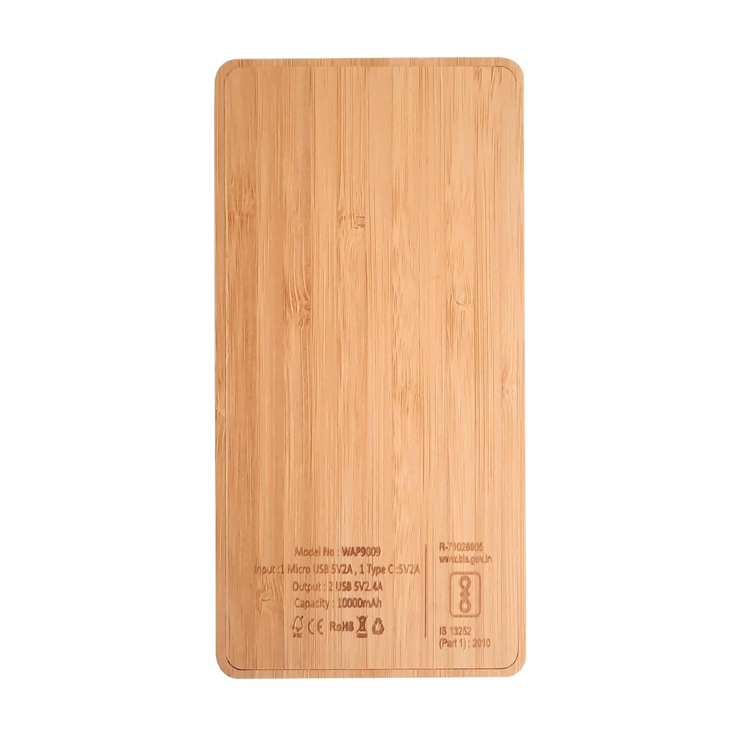 Wangari Aspen 10000mAh Bamboo Wood Power Bank | Fast Charger with Dual USB Output & Dual Input (Type-C & Micro USB) | LED Indicator | Portable Charger for iPhone, Android & More